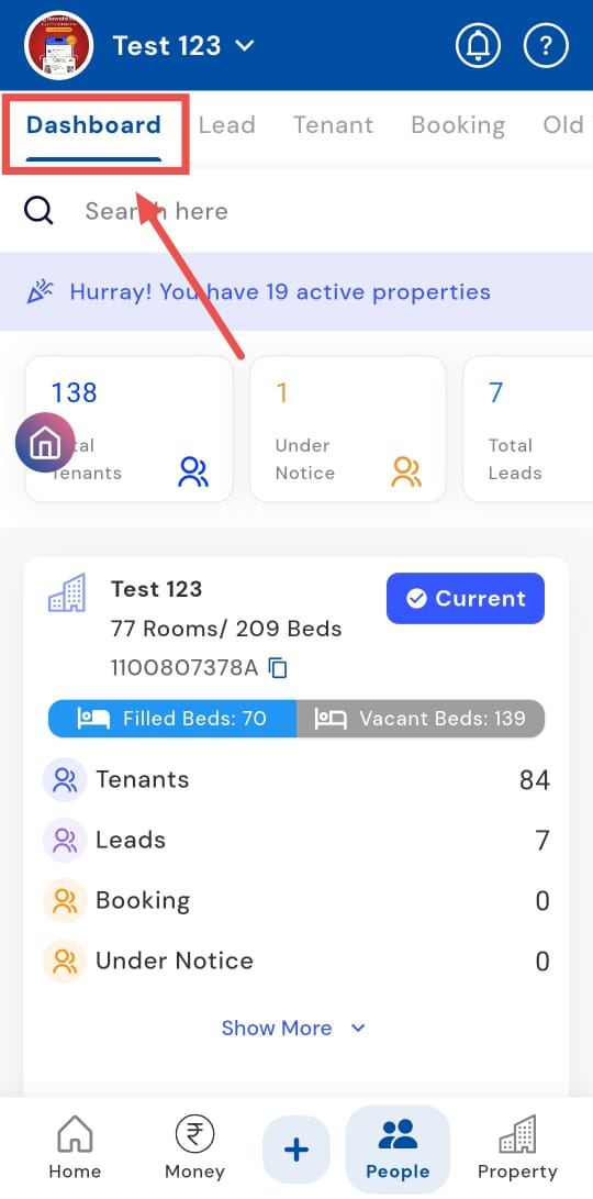 - Step 2: Open the Dashboard Click on the Dashboard option. Here, you’ll see all properties listed.