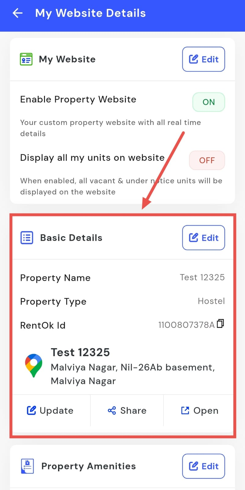 Your property website details control how your property appears online, including its name, type, and location. If any of this information changes or needs correction, you can update it directly from the website settings without any extra effort.